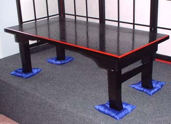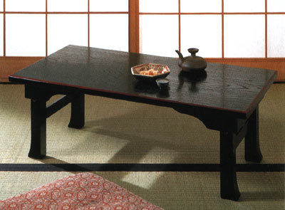 | 1.スペック | サイズ:幅900×奥行き450×高さ320mm、重さ:5.6kg、 3分つや摺漆仕げ、主材:栓材、塗装:黒塗朱面 摺漆(すりうるし)仕上げ 木目調生地、H型連結折れ脚(純正モデル)。 |