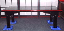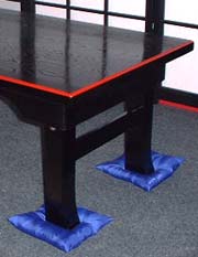 | 洋室がふえ畳のスペースが減少する現代でも、古都京都奈良において寺院はもちろん一般 家庭でも二月堂机は立派に現役である。立てに組み合わせば真四角に、横につなげば長机に姿を変える。井型に並べると多人数の寄り合いが出来るし、一台あればインスタントに書斎空間が出現する。脚を折り畳めるのは収納のためだけではない。脚をたたんだ状態で直接床におくことで床の間に早変わりする。ちなみに 明治以降折れ脚になったといわれている。 |