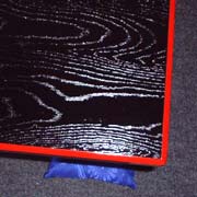 ![]() トップはきれいな木目。 縁には朱赤の塗り。 |